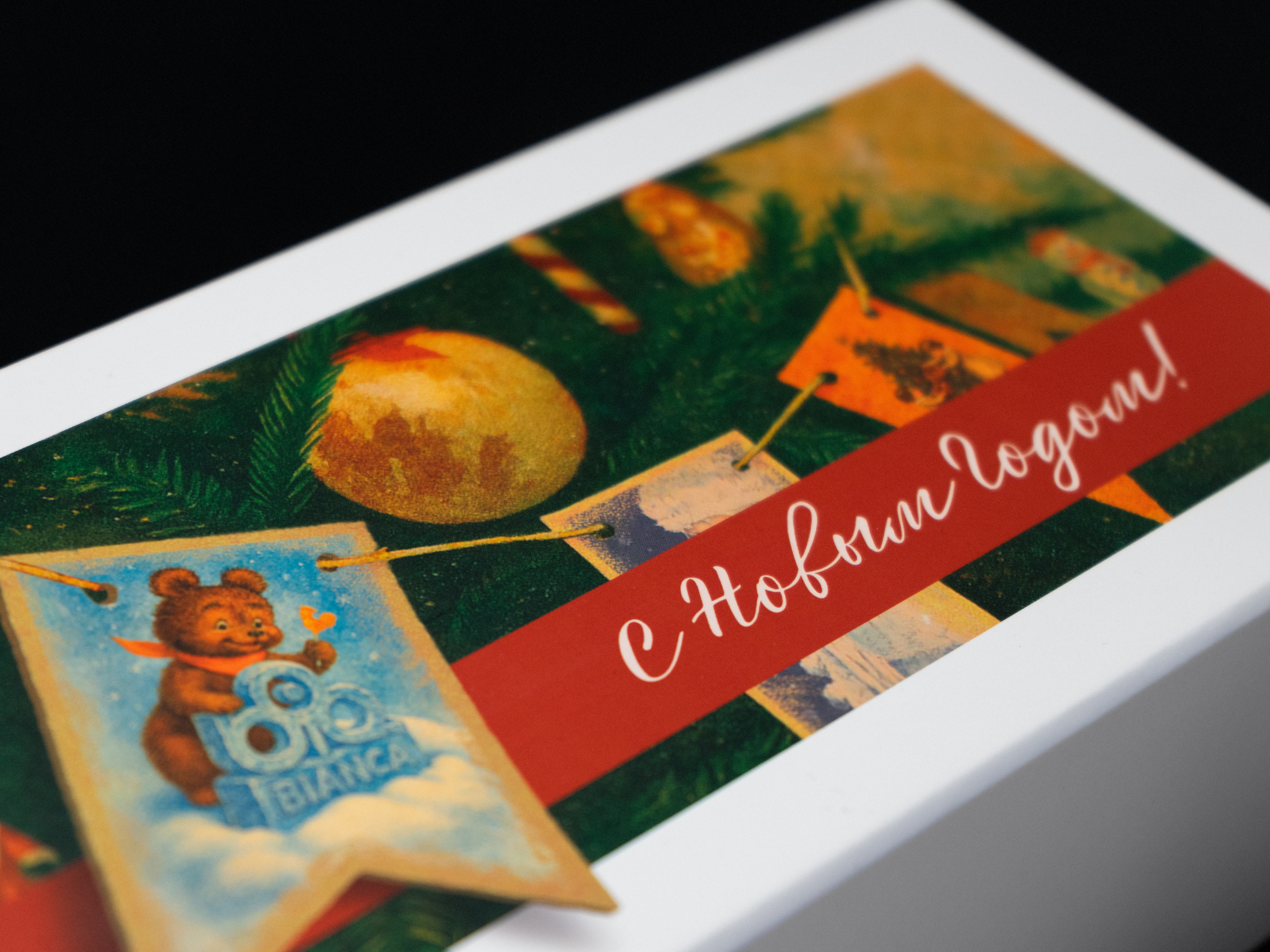 Размер коробки 263x116x86 мм. Коробка типа: пенал глухой. Переплетный картон 2 мм. Лайнер - мелованная бумага 150 г/м2. Офсетная печать CMYK 4+0. Кашировка внутри и снаружи. Репсовая лента для извлечения пенала. Внутри вклеена лента для извлечения ячеек адвент-календаря.