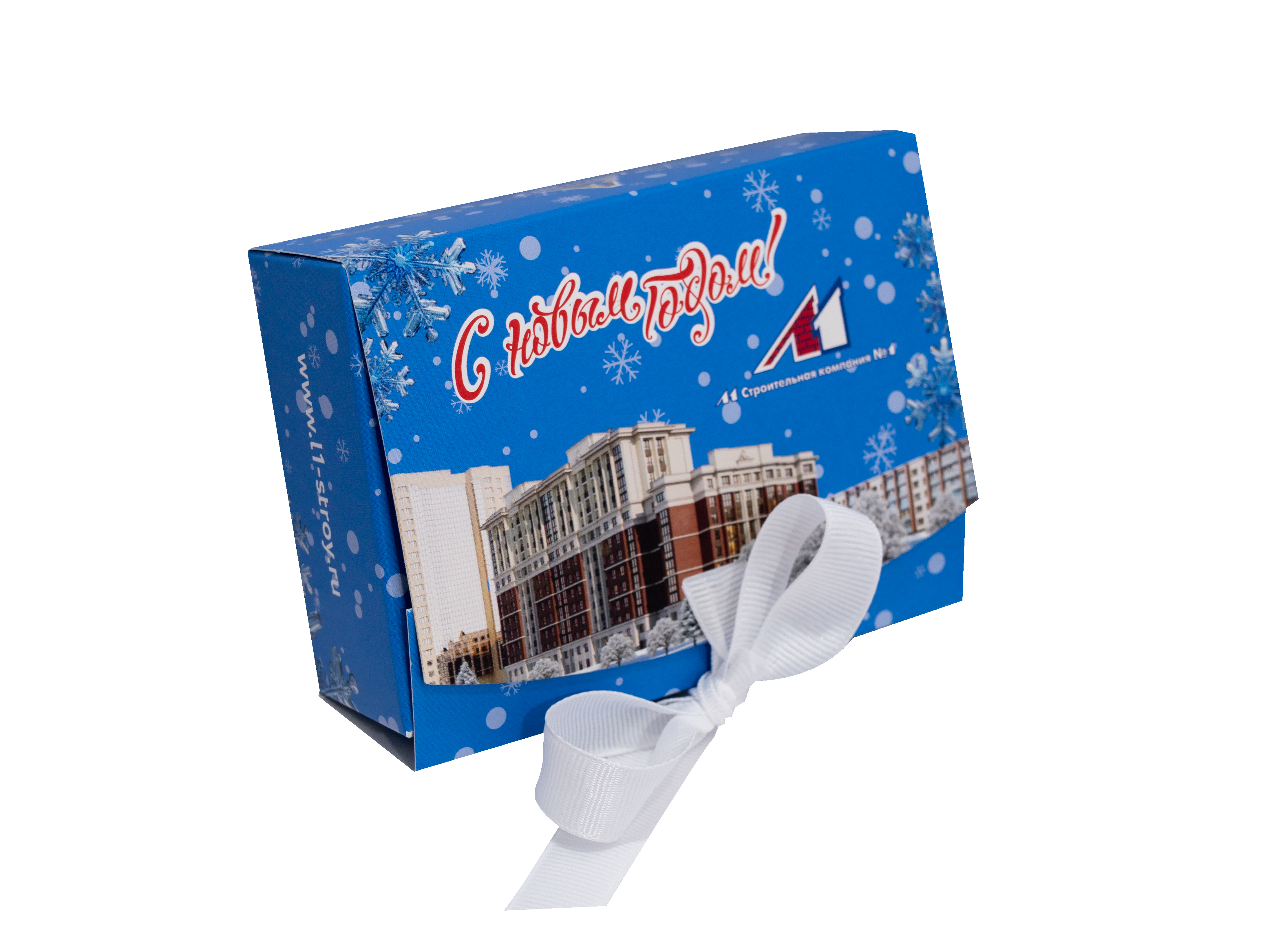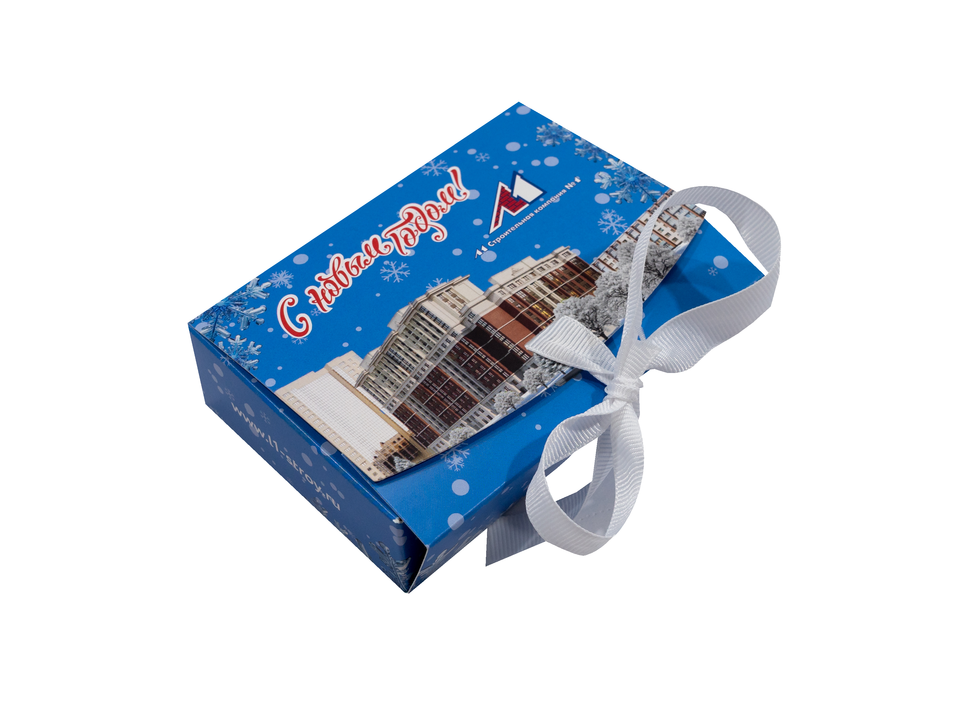 Изделие выполнено из мелованного картона плотностью 270 гр/кв.м, благодаря чему коробка с лентой отлично держит форму, выглядит аккуратно и презентабельно. Поверхность приятная на ощупь и подходит для качественной печати.