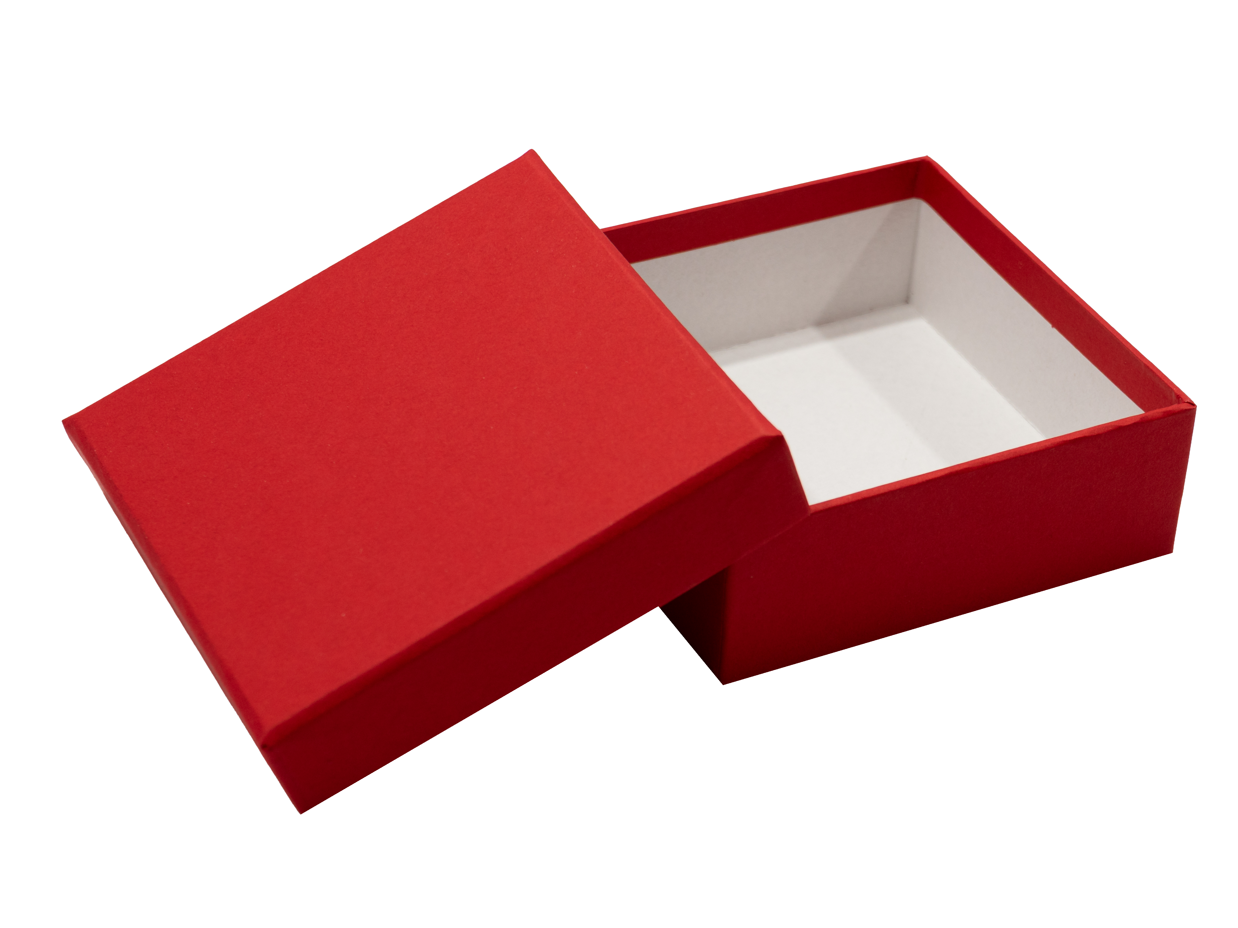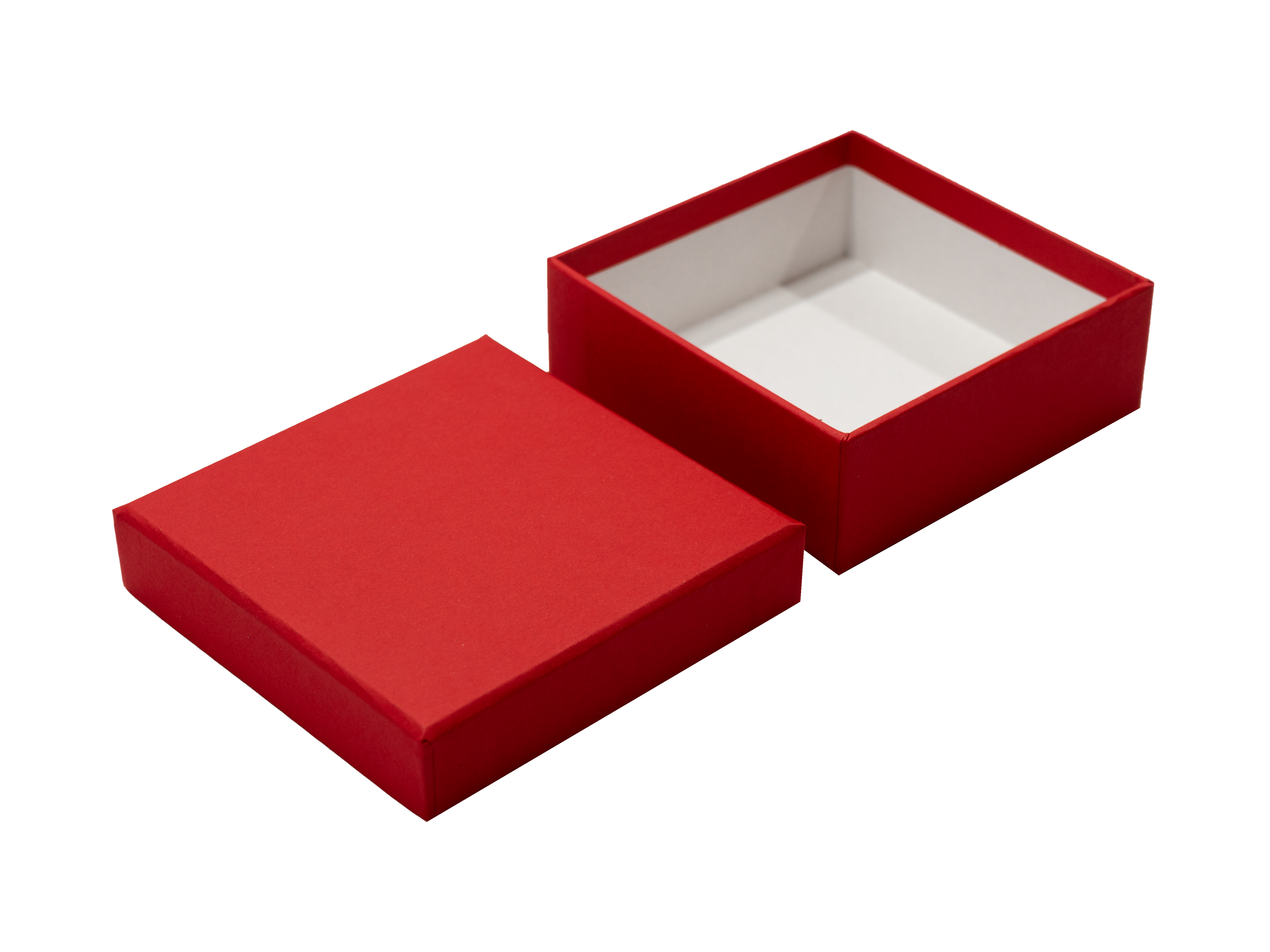 Размер коробки 95х95х35 мм, высота крышки 25 мм. Переплетный картон 1,75 мм, лайнер - красная дизайнерская бумага 120 г, без печати.