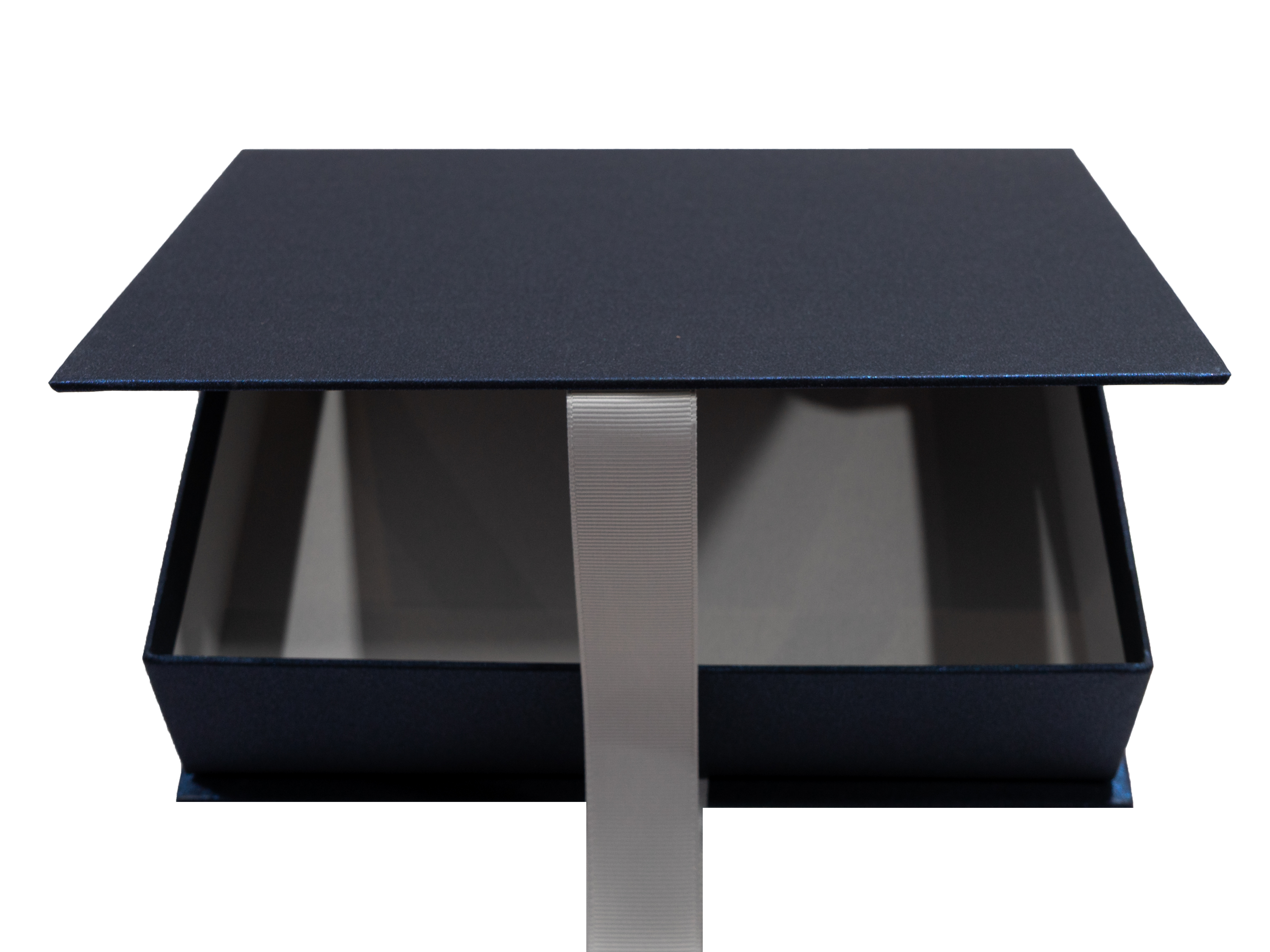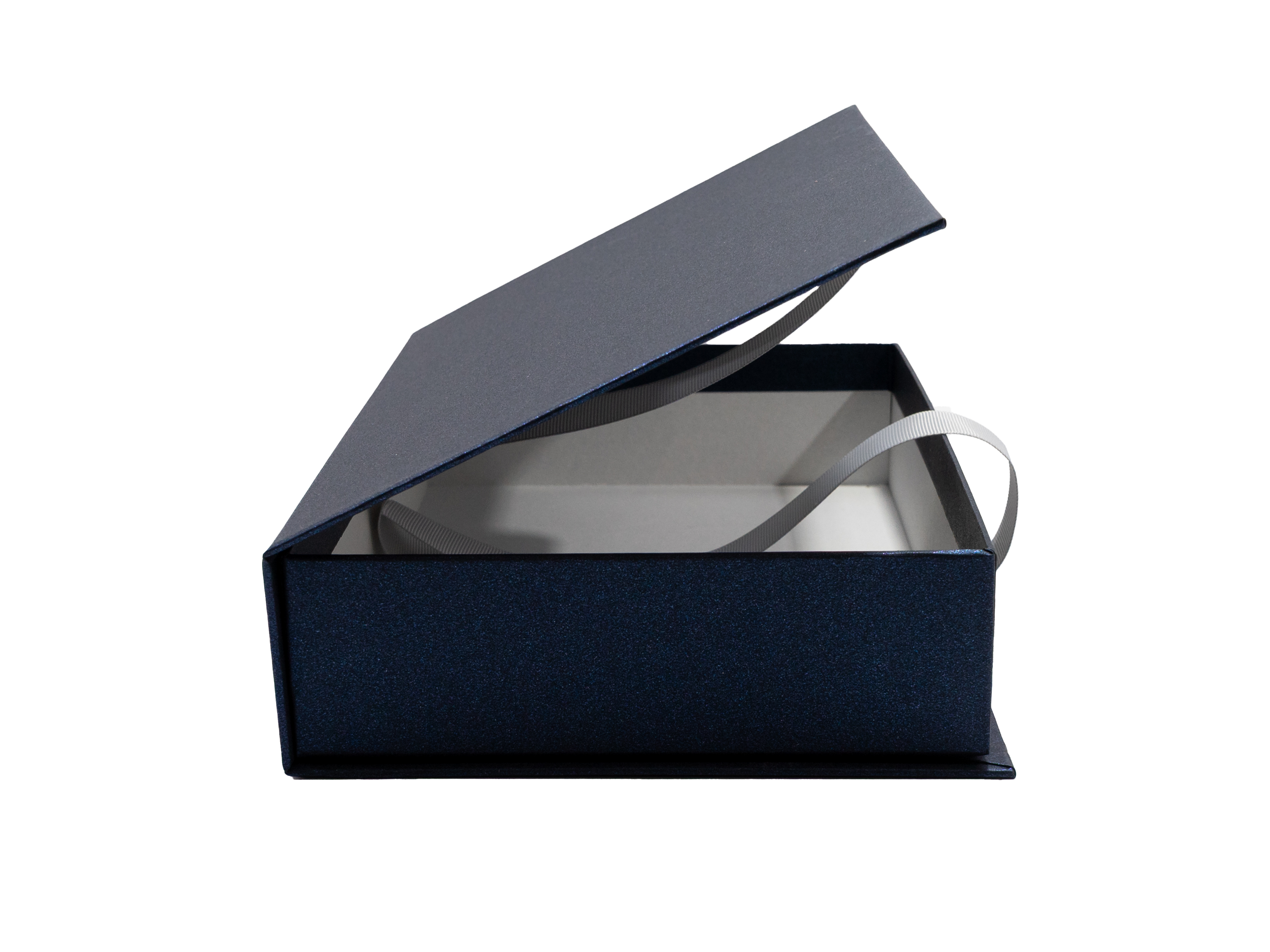 Коробка-шкатулка на ленте 220х160х50 мм — стильное и универсальное решение для упаковки аксессуаров, сертификатов, подарков и брендированной продукции. Элегантная конструкция с лентой делает процесс открытия аккуратным и приятным, подчёркивая ценность содержимого.